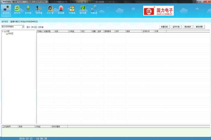 Ø 统一管理系统内终端, 主界面显示各终端当前工作状态,远程批量调节终端音量;