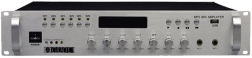 Ø 内置D类数字功放、可选择120W/250W/350W/650W(定压100V)输出、发热小功效更高、 无信号时自动进入省电模式。