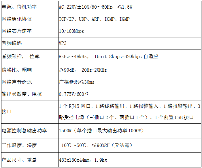产品名称:IP网络广播机架式终端